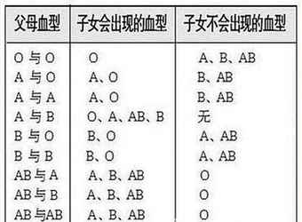 从下面这两张图中我们可以很明显的可以看出,夫妻双方的血型给合,生出来的孩子将会是什么血型其实都是有一定规律的。