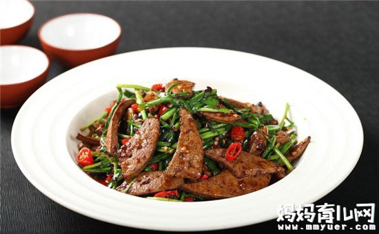 制作:将韭菜切段,羊肝切片,先将羊肝武火略炒片刻,再入韭菜翻炒,加入味精即可。