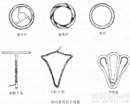 国内常用的有金属单环、麻花环、混合环、节育环、T型环等,但以金属单环为最多。不带药的节育器称惰性宫内节育器,如宫内节育器加上孕激素或铜,可提高避孕效果,称之为带药或活性宫内节育器,是目前推崇的节育器械种类。