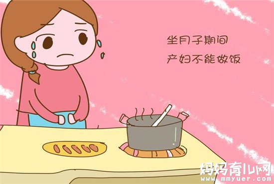我们都知道坐月子期间要待在家里静养,多多休息,不要提重物,不要喝冷水,注意饮食营养,保证充足的睡眠。有的产妇就把坐月子理解成在家待着就行,只要在家待着,做什么都行。比如有的妈妈很爱下厨做饭,坐月子在家闲得无聊,就忍不住到厨房做两个拿手好菜。其实坐月子期间是不提倡做饭的,做饭也算是一种体力活,妈妈吃不消的。