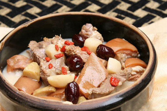 材料:20克龙眼,人参6克,15克枸杞,150克猪瘦肉。