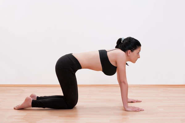 吸气,小腹自然放松;呼气时,用力将小腹向内收回。