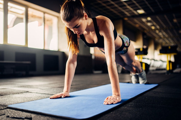 整个过程中不要塌腰,收紧腹部,不要塌肩,肘关节用力压向垫子。