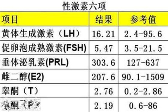 雌二醇排卵前的激素六项数值是48-521皮摩尔/升;在排卵期时激素六项数值是70-1835皮摩尔/升;排卵期的激素六项数值是0-4.8nmol/l,排卵后激素六项数值是7.6-97.6nmol/l,最后,睾酮正常的浓度值为0.7-3.1nmol/l。