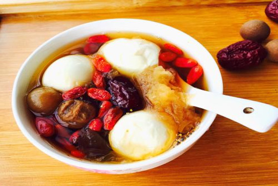 做法:先将鸡蛋带壳煮熟,然后剥壳备用;银耳和红枣先用水稍稍泡一泡,然后将银耳撕成小片,红枣可以去核也可不去核;将所有的食材与生姜片,红糖一起放到锅里煮,煮到汤红糖完全融化入味即可。