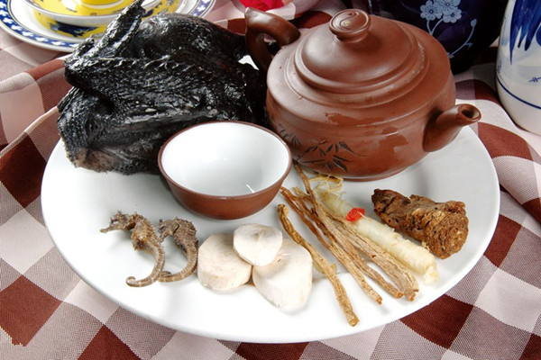 做法:将乌鸡洗净后去除多于的内脏切成鸡块,同时将人参和红枣一同洗净备用;准备一个煮锅加入适量的清水,先将鸡块放入焯水,然后捞出洗净放入炖盅内,依次加入人参、枸杞和红枣,用小火慢炖,起锅前加入适量的食盐即可。