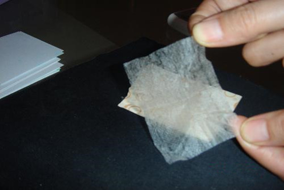 取出避孕膜后对折两次,在最后只有原状25%大小时停止;