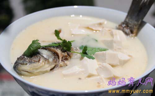 产妇鲫鱼汤是一款专门为孕妇催奶的汤品。鲫鱼的肉质细嫩,是通乳的食物,对新妈妈的通乳有很好的效果。