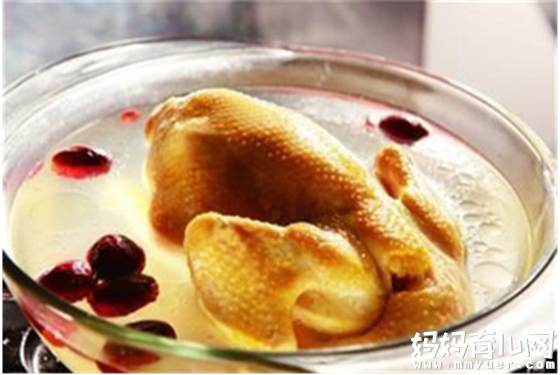 原料:老母鸡1只,党参50克,黄芪50克,淮山药50克,大枣50克,黄酒适量。