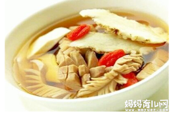 做法:先将莲子和薏苡仁用月乃汤加盖泡两个小时。再将山药和猪肝(猪心)洗净、切丁。最后将以上食料加盖用大火煮开后转小火煮15分钟。
