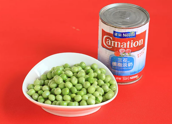 【用料】豌豆(煮)适量、虾仁(红)适量、色拉油少许、食盐适量、鸡蛋白适量、水适量、胡椒粉少量、白糖适量