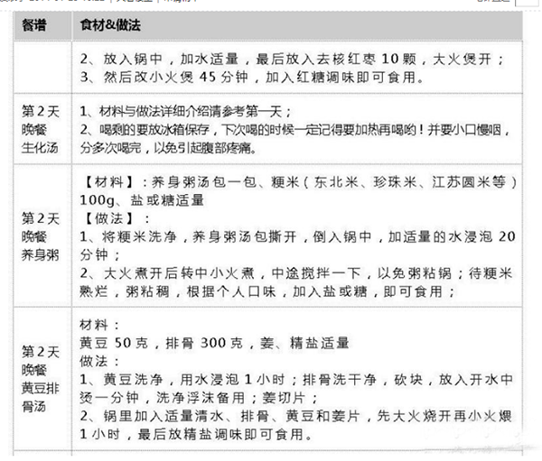 另外,再分享一个网友分享的月子餐食谱及食材安排。据说,这个月子餐30天食谱是量身定制的,她自己使用感觉还可以,有配合一些药膳来使用。她本来不想要,老公坚持要买。算了,也不知道是为了她,还是为他儿子呢。。哈哈。闲话少说了。言归正传吧。
