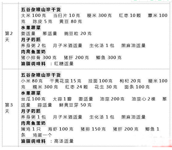 月子餐都包括什么食材: