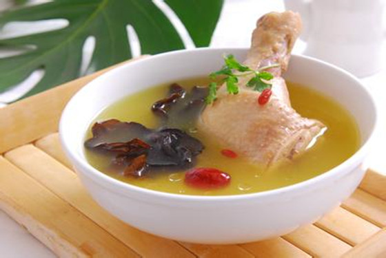 原料:鲜鸡肉200克(去鸡皮),田七5克,红枣4粒,姜1片,盐少许。