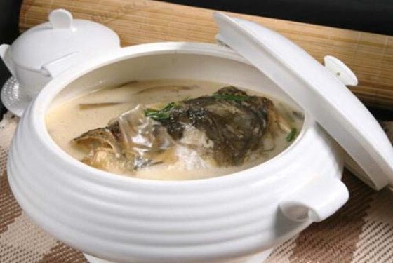 4. 另起锅加油烧热,加入水烧开后放入鲫鱼,木瓜,红枣,料酒,烧开锅后用小火煲两个小时,加盐,味精调味即可。
