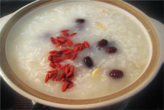 材料:米饭1碗,南瓜100克,鸡蛋1个,薏米40克,枸杞子10克,葱1根