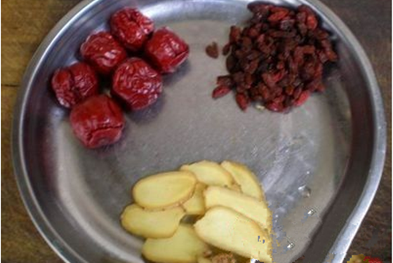 2、将红枣、枸杞,当归清洗干净,生姜切成片,葱切段,蒜切片备用。