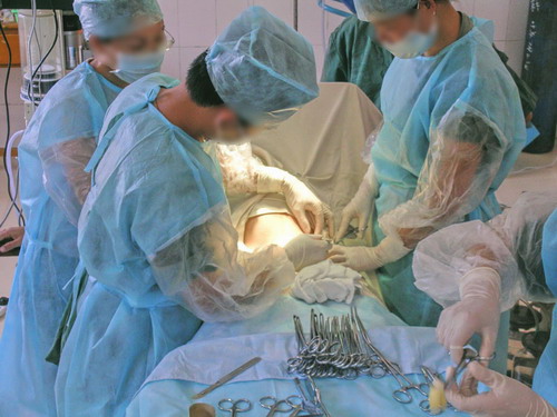 凌晨3:30分,在大夫没有打麻醉药以前,我探头看了一下,这个时候已经在老婆的外(和谐)阴……部位就能看到孩子脑袋,感觉用手指就能碰到了。我把情况报告给我老婆,并且说着“加油、努力”这些不痛不痒的扯淡话。后来大夫就给切了,我只看到鲜血流了下去,没敢看伤口(我承认我胆小了)。