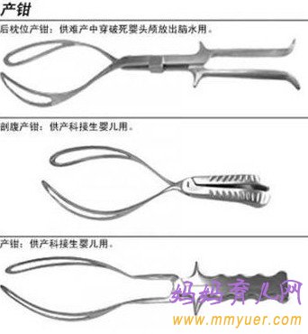产钳是一种看起来像是一对大的、而有弧度的铁钳子。它们通常用来帮助胎头的娩出,特别是当胎头较大、或者胎头的位置不对时使用。有时当胎心音变慢、而需要尽速将胎儿娩出时,则会使用产钳来加速分娩。如果产妇因为力气用尽或是麻醉而丧失感觉,以致于无法有效地用力时,也会使用产钳来帮忙。