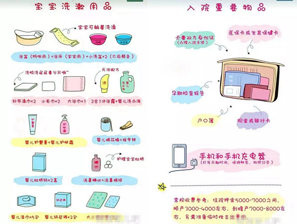 待产包最全清单8月份——入院重要物品(医保卡、生育保健卡、夫妻双方身份证、孕期检查报告、户口簿、钱或者银行卡、手机和手机充电器,这些都是住院基本的东西,带好重要的证件方便给宝宝及时办理出生证明等)
