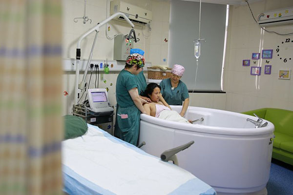 (2)水温可以让产妇感觉到舒适感,温水可以使产妇的血管扩张,肌肉的松弛度增加,进一步扩张宫颈口,增强会阴的弹性,缩短产程、降低分娩时候产道的损伤;