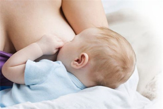 2、让宝宝以正确的姿势吃奶,宝宝的肚子贴近妈妈的肚子,宝宝的下巴贴紧妈妈的乳房。