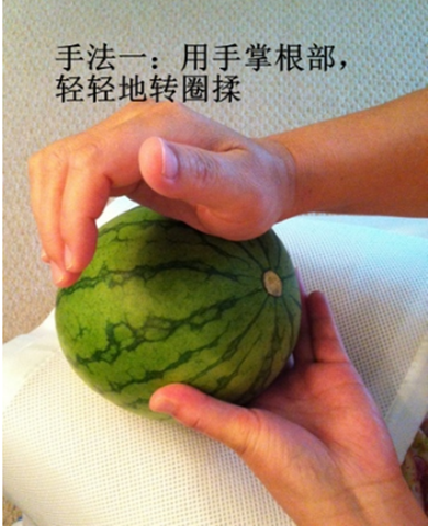 1.用手掌根部,轻轻地转圈揉,就像我们北方人揉面团的动作。两个乳房都要以顺时针按摩(以按摩者的角度看是顺时针),方向不能错。揉的时候不要用力太大,下手不能太重,要悠着劲儿揉——产妇的乳房就像一个大柿子,如果用力太大,好像摘柿子一样“揪”下来,会造成乳房下垂。