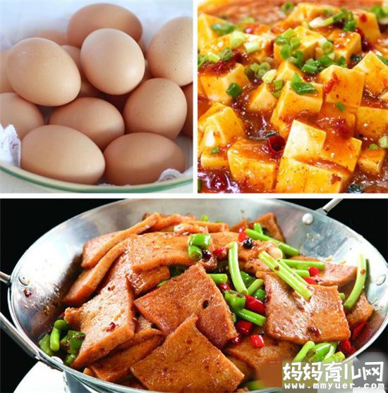 富含蛋白质的食物:牛奶、鸡蛋、瘦肉、鱼类、豆制品等。