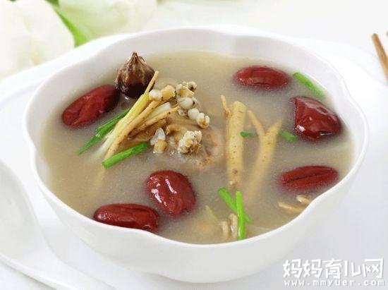 2、补气膳食:山药百合莲子汤;参药煨乳鸽;五香牛肉;花生大枣烧猪蹄。