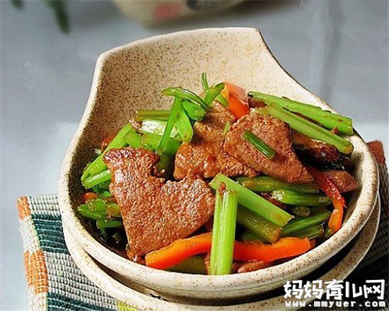 芹菜含叶酸丰富,猪肝含铁高。有贫血倾向或叶酸不足的妇女,最适合选用此道菜肴。