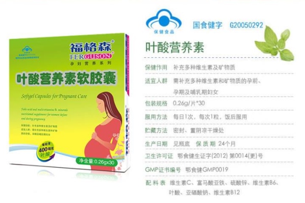 (5)福格森中所有的成分都是安全的,不含糖分和激素、防腐剂等等,长期服用不会过量,也无副作用,是一款安全有效的叶酸;