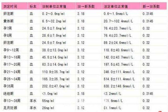 血hcg和孕酮正常参考图