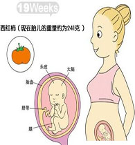 怀孕19周时,胎儿发育的速度逐渐加快,此时的胎儿已长到15厘米左右了,大约有200-225克,总体来说,已经是前两个月的2倍。从这周开始,味觉、嗅觉、触觉、视觉、听觉会在大脑中专门的区域里发育。