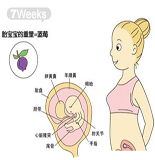 怀孕第七周时,胚胎的细胞仍在快速地分裂,大小就象一颗豆子,大约有1.3厘米长。胚胎的手臂和腿开始伸出嫩芽,手指也从现在开始发育。这时心脏开始划分成左心房和右心室,胎儿仍有一个尾巴。