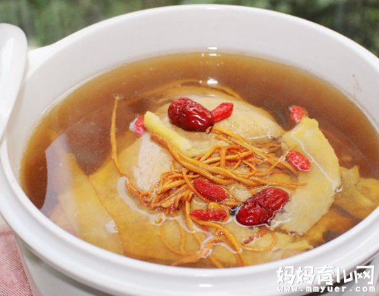 材料和调味料:鸭子半只、冬虫夏草2钱、盐1小匙