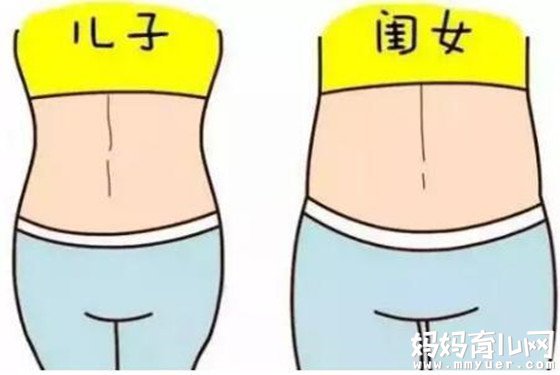 2、尖肚子男,圆肚子女;肚子小男,肚子大女;