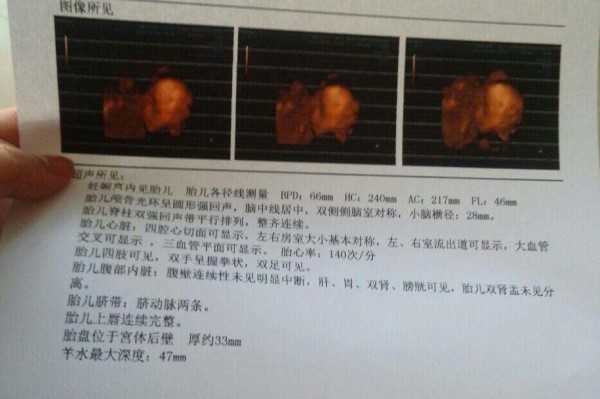 (3)有人说可以直接看胎儿的长相便可判断,有一个方法就是看胎儿的头脸部,胎儿头位于耻骨上,头骨光环整齐,脑中线居中,胎儿上唇鼻骨可预示生男孩。