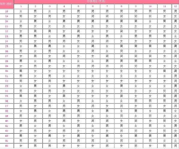 清宫生男生女表来历的真实性无从考究,但根据现有流传生男生女图画法一目了然,根据农历算法,清楚列出18至45岁女性在不同月份受孕,就会生男孩或生女孩。妇女只须根据生男生女,按月“计划”受孕,就能控制生男孩或生女孩。