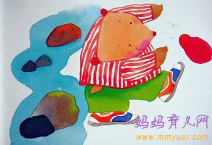 回家的路上,小熊使劲地踩着地面,吧嗒吧嗒响,就像穿着红皮鞋一样神气。