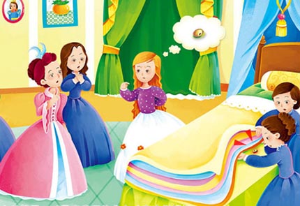 许多人都不相信,王后决心验证一下。她走进卧室,在床上放了一粒小小的豌豆,然后把二十床垫子和二十床鸭绒被压在豌豆的上面。最后她把那位姑娘领进了卧室,让她好好睡上一觉。