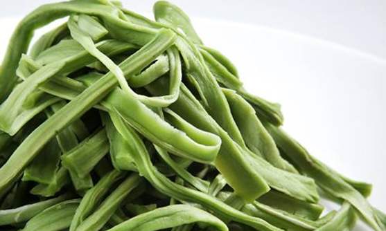 4、盛入餐具中,加入白糖、食醋、麻油等调拌,亦可以与肉类荤拌。可烧菜、烩汤、配制多种素菜,制作成南北风味,味若海蜇、独具特色。