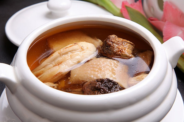 做法:将所有的药材装进纱布内扎口清洗一遍,然后将鸡肉、猪骨、猪肉洗净;将老姜切成姜片,香葱捆成小结,将鸡肉、猪肉、猪骨以及药材一同放入煲锅中;锅内加入适量的清水用大锅熬煮,煮制过程中捞出多于的浮沫;然后在锅中加入姜片和葱结用文火熬煮,煮熟后将猪肉和肌肉捞出切条后加入适量的食盐与药汤一同服用。