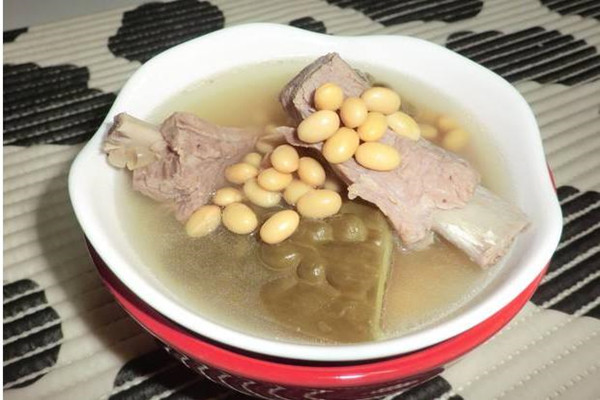 做法:将黄豆提前用清水泡软,排骨洗净后先用开水焯水,;然后将焯好水的排骨和黄豆放入锅中,先用大火煮开后转为小火,慢煮2小时加入适量的食盐即可起锅。