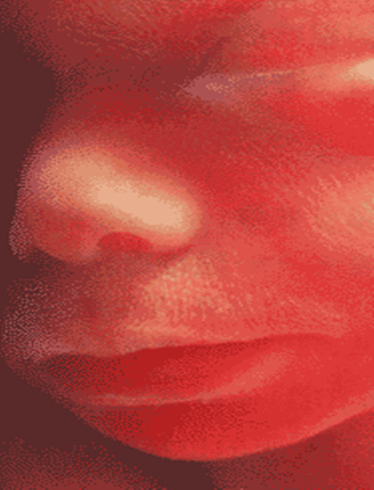 孕7周:胎儿长到1.33厘米,胚胎已具有人雏形,体节已全部分化,四肢分出,各系统进一步发育。B超清楚看到胎芽及胎心跳,胎囊约占宫腔的l/3。