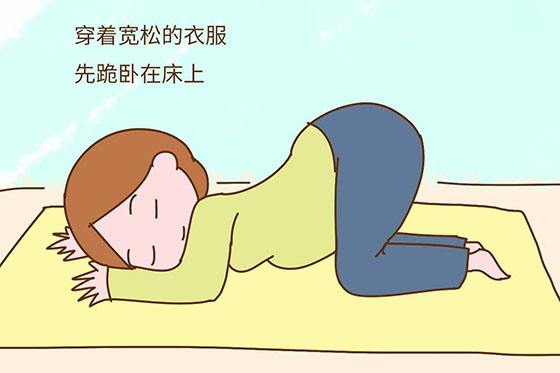 2、孕妈妈的两只胳膊屈曲放在床上,双腿分开与肩同宽。胸部与肩尽量贴近床面(地面)这里需要注意一定要在硬床或者地面做练习,不能在软床上做。