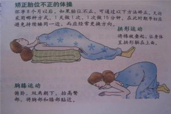 孕妇妈妈们可以自己在家中进行运动纠正,通常产科医生会建议你用侧卧式、膝胸卧位式来进行纠正,具体的方法如下: