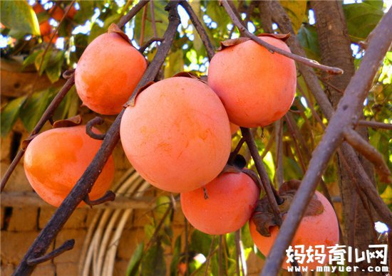 柿子含有大量的维生素A、C和鞣酸,有养肺胃、清燥火,降压止血、预防心血管病,清热滑肠、润肺生津等功效。
