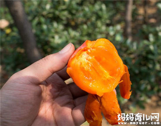 4、孕妇吃柿子应尽量少吃柿皮。因为柿子中的鞣酸绝大多数集中在皮中,在柿子脱涩时,不可能将其中的鞣酸全部脱尽,如果连皮一起吃更容易形成胃柿石,尤其是脱涩工艺不完善时,其皮中含的鞣酸更多。
