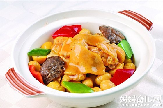 5.再加适量清水大火烧开,转小火把鸡块焖至7成熟。放入栗子继续煮,至鸡块和栗子酥烂,用旺火收汁,留少许汤汁关火