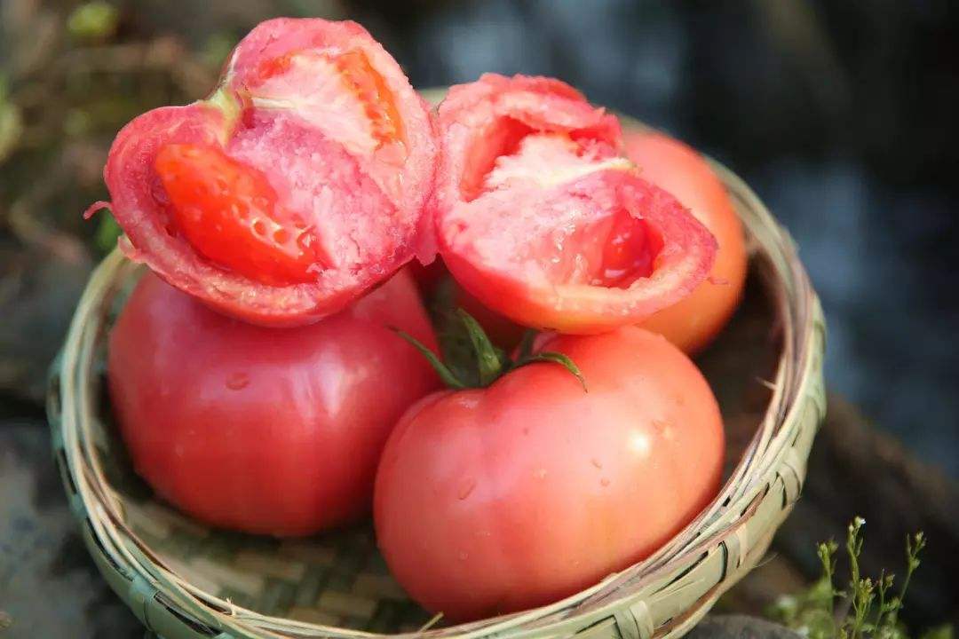挑选番茄时,不要挑选有棱角的那种,也不要挑选拿着感觉分量很轻的,都是催红剂作的怪。要买这种表面有一层淡淡的粉一样的感觉,而且蒂的部位一定要圆润,如果蒂部再带着淡淡的青色,就是最沙最甜的了。不要买带尖和底很高的,要那种整体看起来都比较光滑的,带尖的都是春天抹快速催熟的东西抹多了。选番茄要选颜色粉红、浑圆,表皮有白色的小点点的